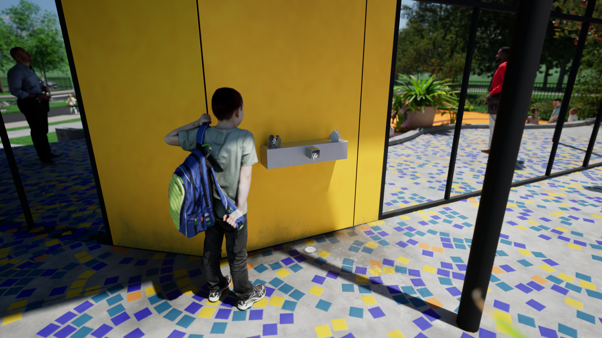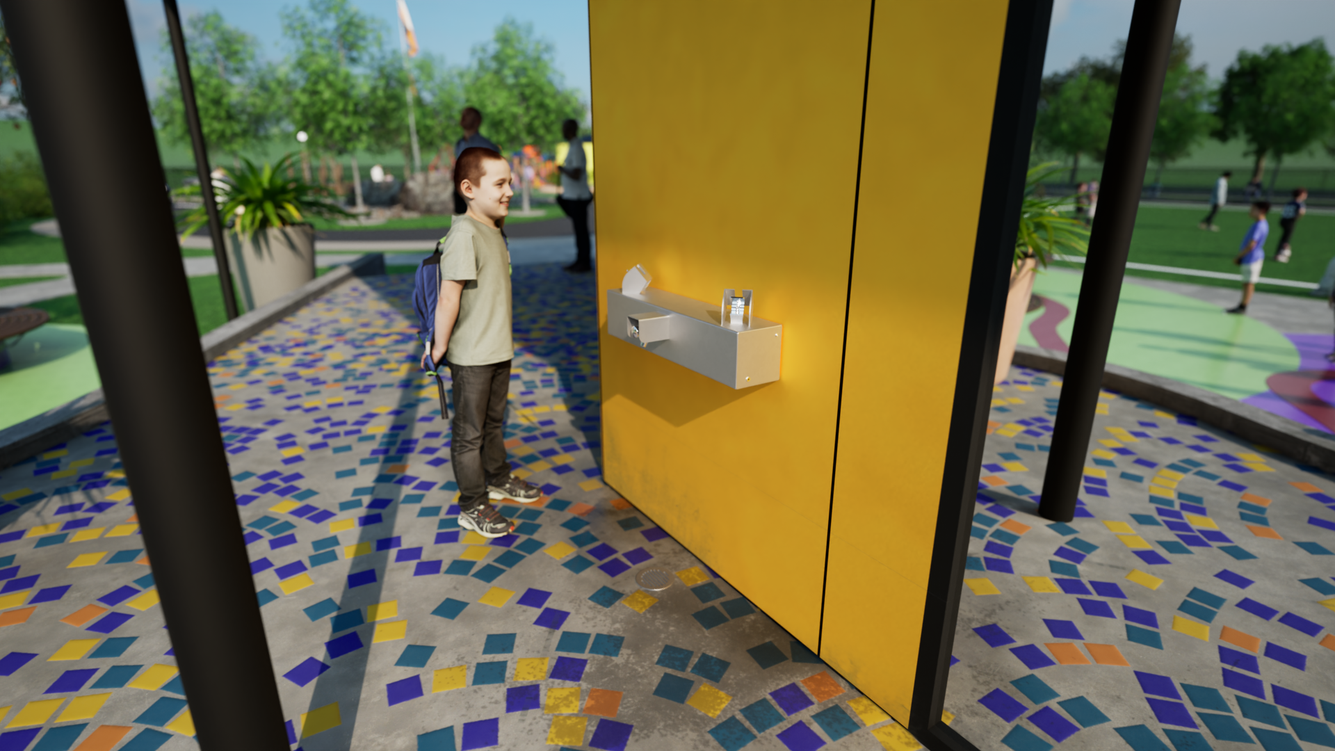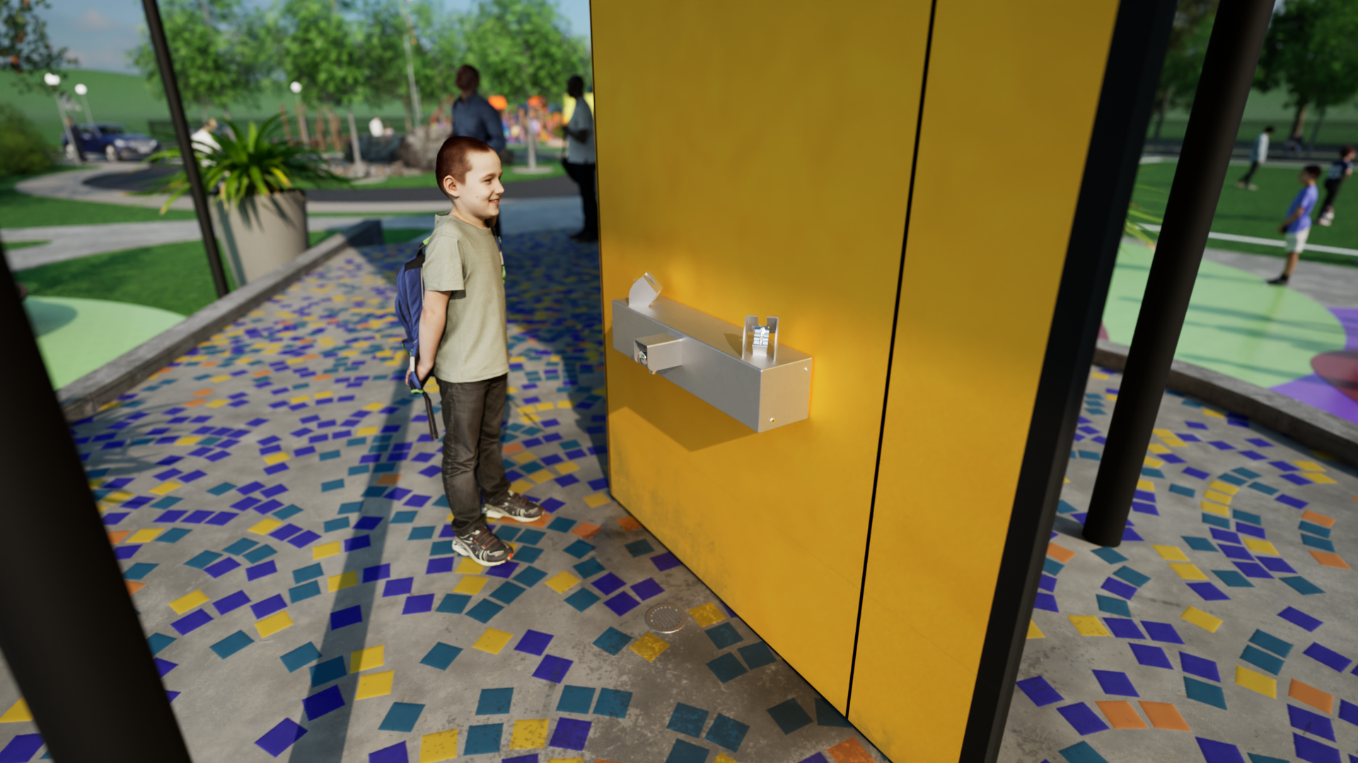 Optional sensor activation can be added to this drinking fountain.