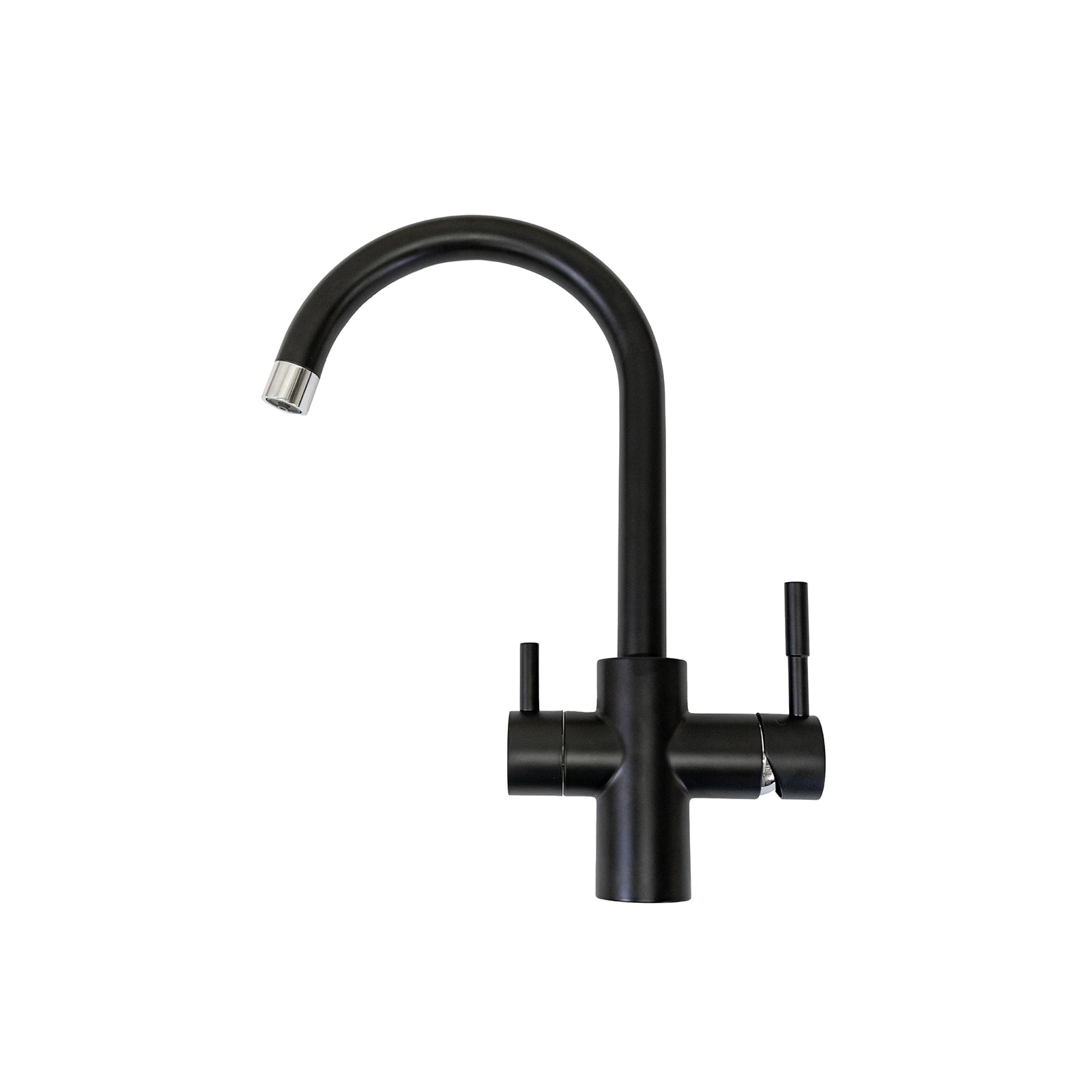 Elevate your kitchen's style with this striking black tri-purifying tap. Combining modern aesthetics with practical functionality, this tap delivers hot, cold, and purified water through an independent line, ensuring your drinking water is always pure and uncontaminated.